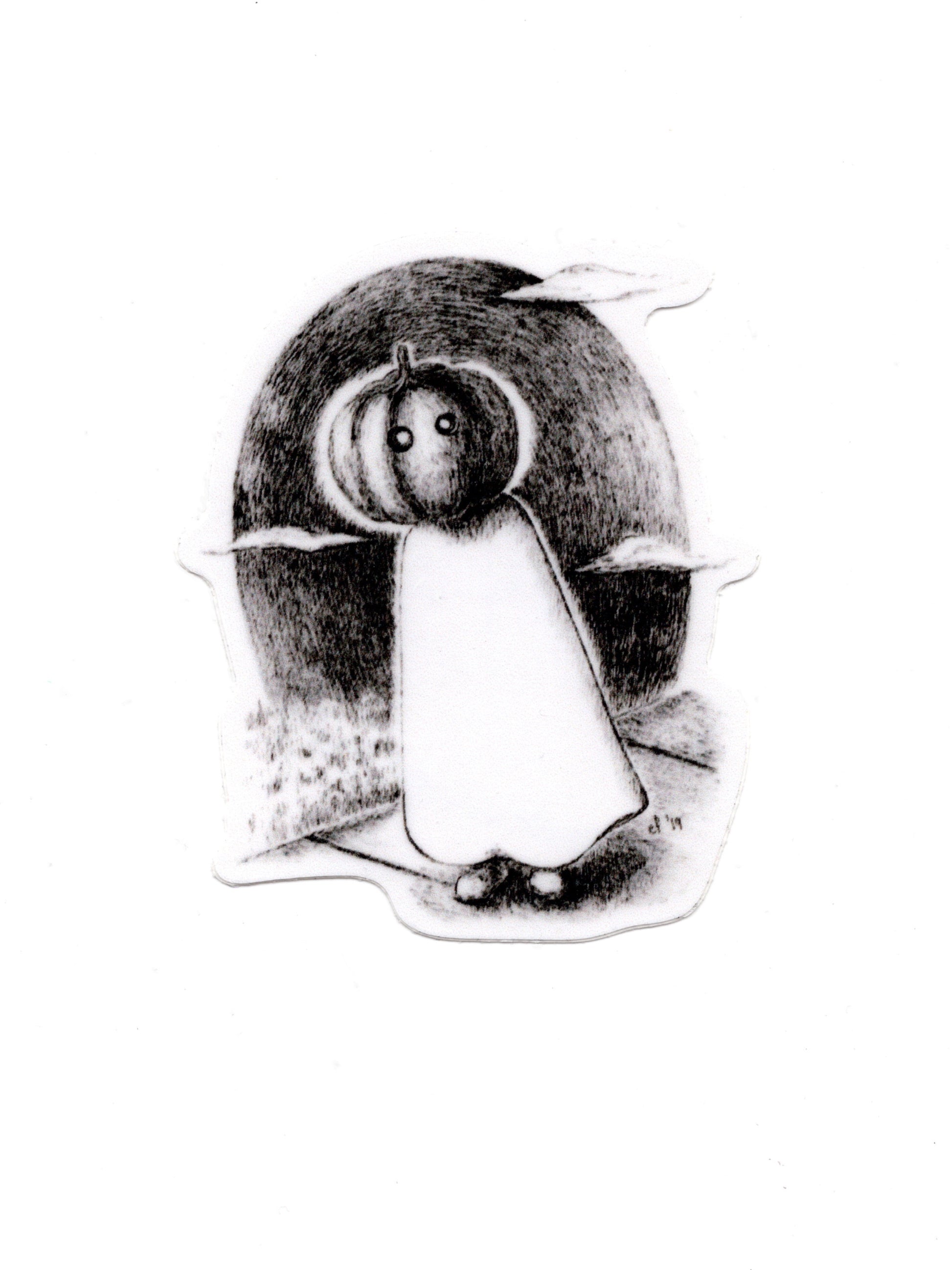 Vinyl sticker of "curiosity." 2.2x2.8in
