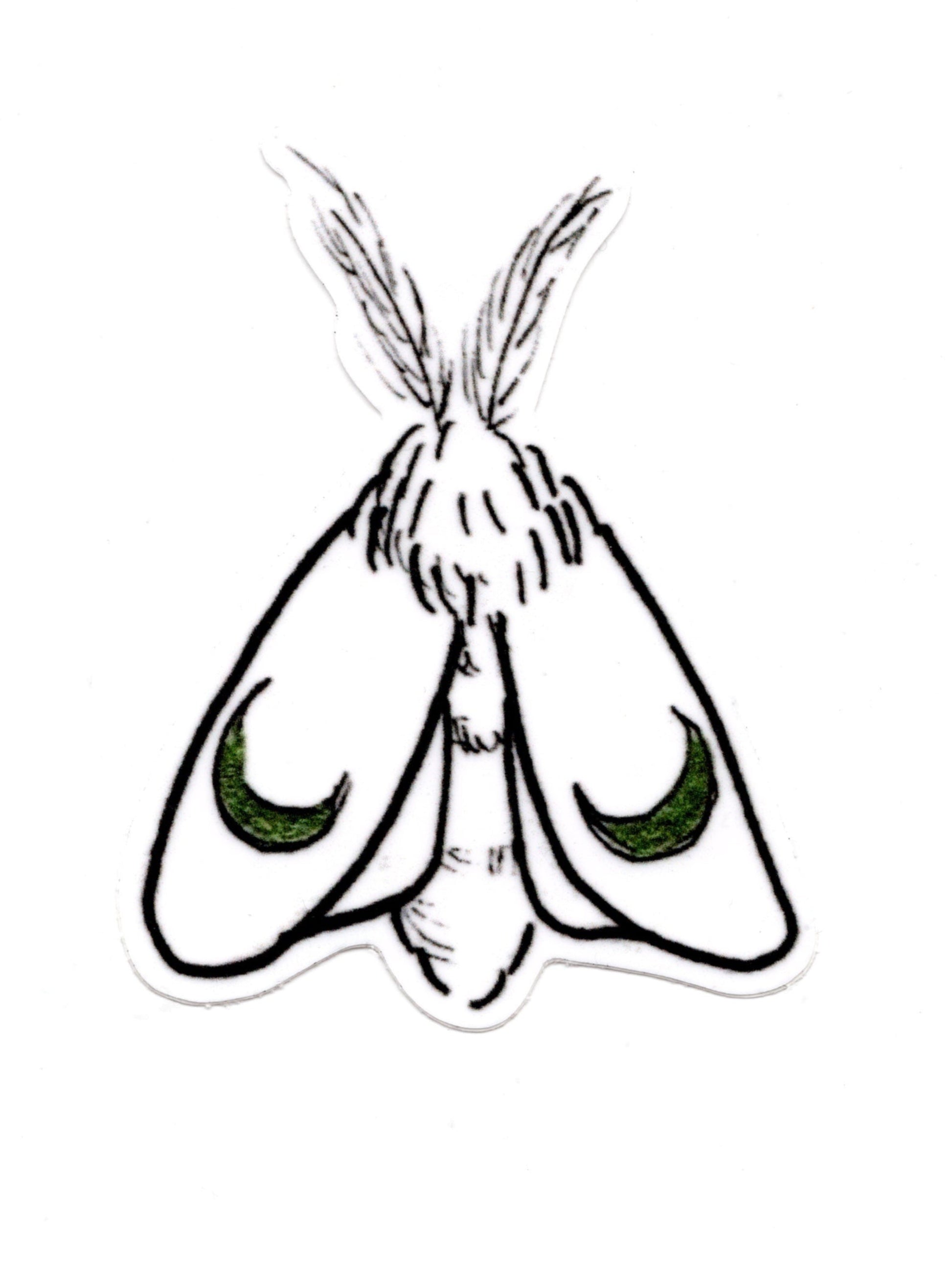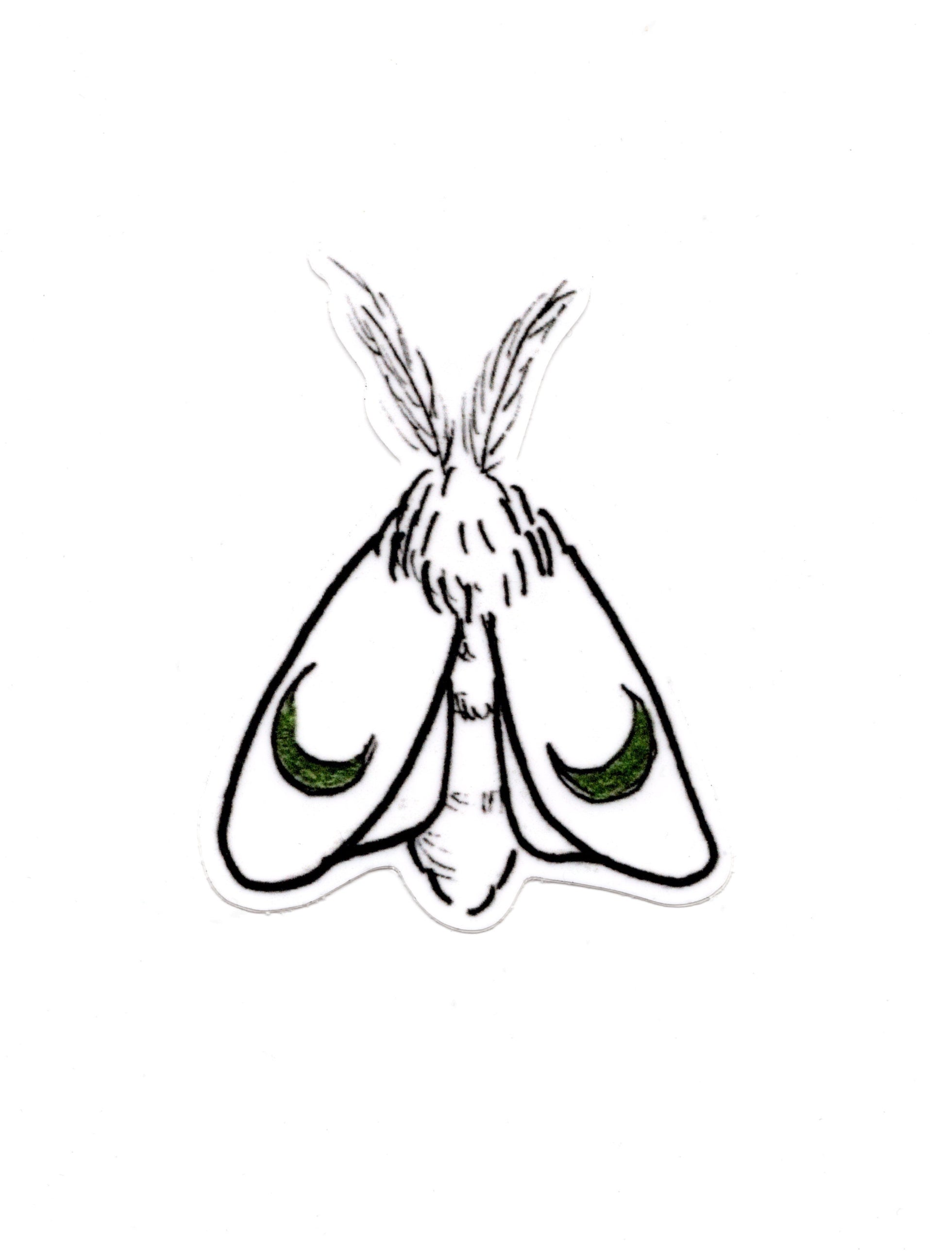 Vinyl sticker of "Moon Moth." 2.1x2.9in